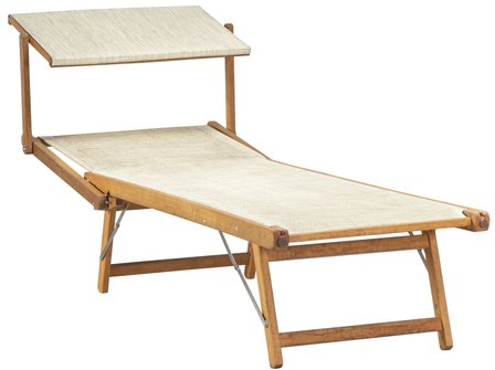 Een klassiek Italiaans ligbed uitgevoerd in gedroogd beukenhout bekend van de Italiaanse stranden. Dit ligbed is uitgevoerd met een groene in wit overlopende fijn geweven bekleding. Het hout is in dit voorbeeld bewerkt met lijnzaadolie. Maar is is ook nog een uitvoering in teakolie en notenolie te selecteren. Het ligbed is 188 cm lang en heeft een hoofdsteun die in 3 standen versteld kan worden met het unieke doch simpele Italiaanse systeem. In de laagste stand is het ligbed praktisch plat. Het ligbed is verder samengesteld uit hoge kwaliteit roestvrijstaal bevestigingsmateriaal en ijzersterke PVC/polyester bekleding. U kunt dit ligbed ook zonder zonneklep bestellen.