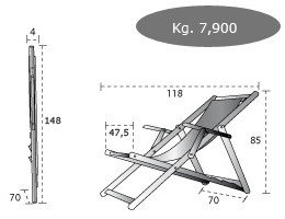 De afmetingen van deze ligstoel zowel in opengevouwen als opgeklapte toestand treft u hieronder aan: