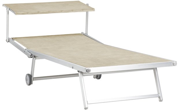Deze 2-persoons versie in de kleur taupe van de alom bekende ligbedden op de Italiaanse stranden is voor romantische zonaanbidders. Volledig in vederlicht maar oersterk aluminium uitgevoerd, in de lengte van 209 cm en breedte van 100 cm. Het ligbed heeft een hoofdsteun die in 3 standen versteld kan worden met het unieke doch simpele Italiaanse systeem. Verder bestaat het ligbed uit hoge kwaliteit roestvrijstaal bevestigingsmateriaal en ijzersterke PVC/polyester bekleding. U kunt verder kiezen uit wel 53 verschillende bekledingen. Het aluminium is met een dikte van 20 micron geanodiseerd tegen allerlei invloeden van buitenaf. Daardoor zijn de ligbedden absoluut weer- en zoutbestendig. U kunt deze ligbedden zonder probleem altijd buiten laten staan.
